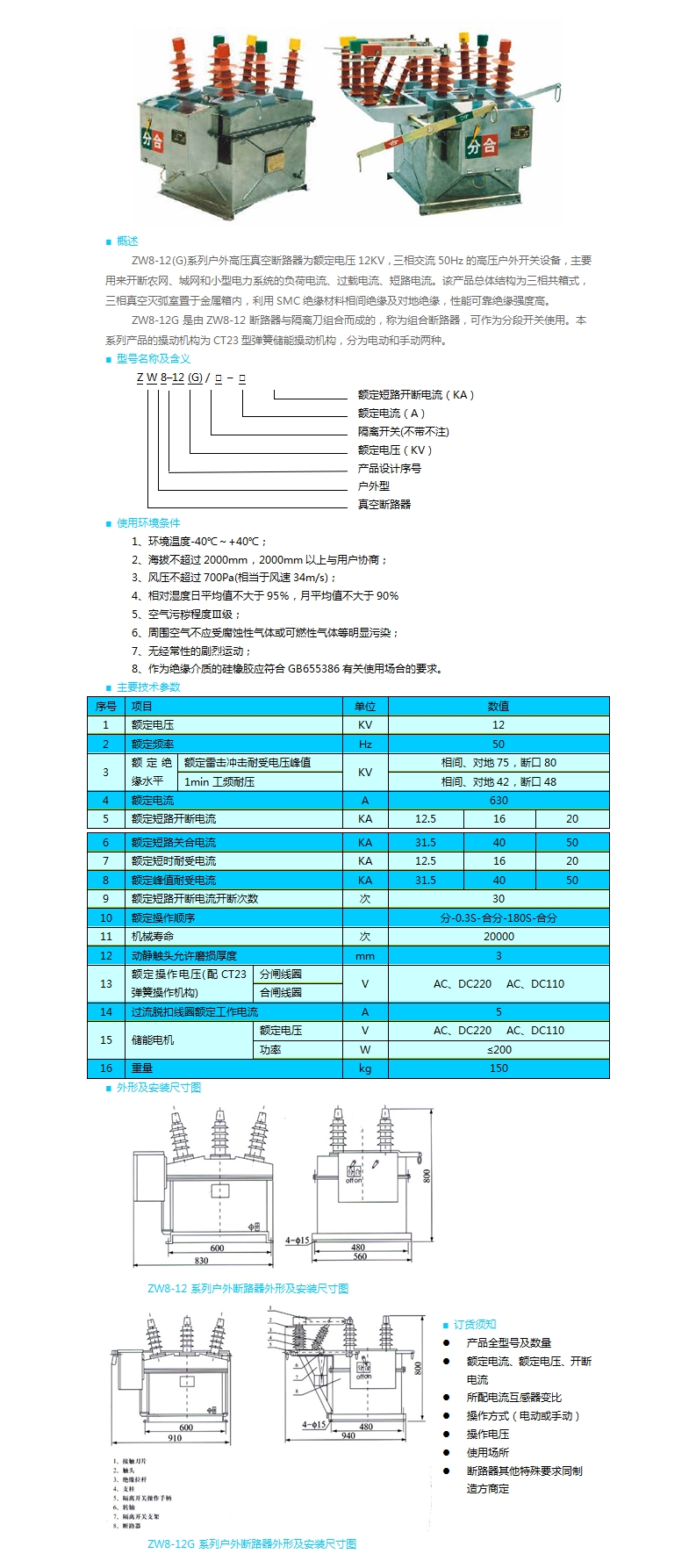 ZW8-12(G)型戶外高壓真空斷路器