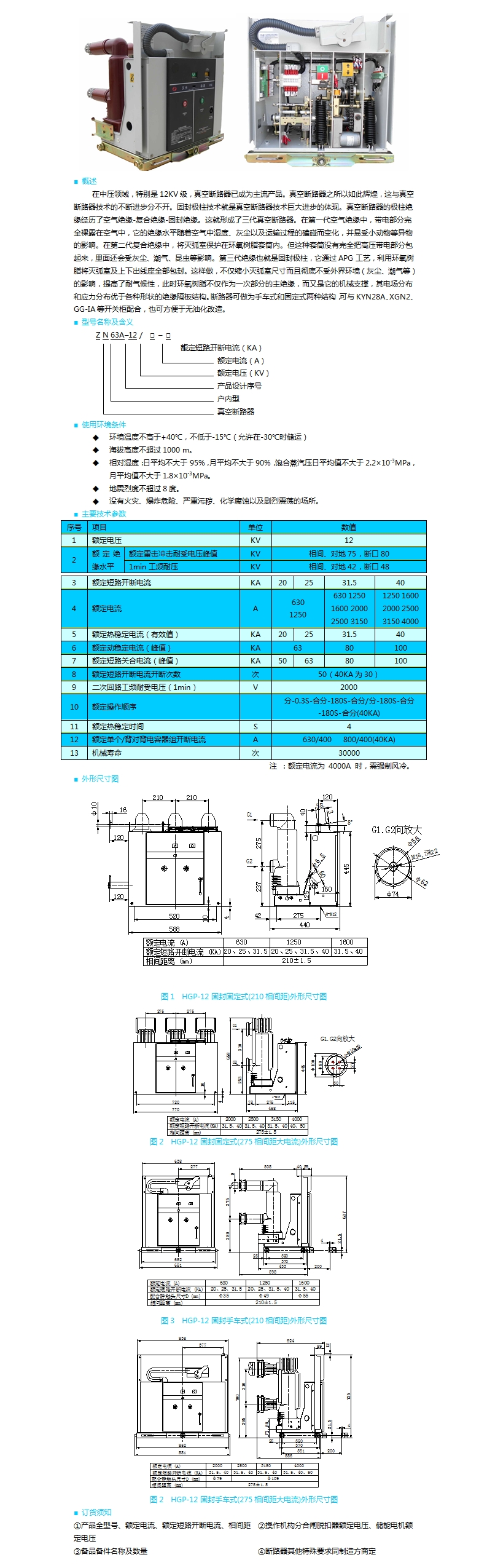 HGP(ZN63A-12)固封式戶內(nèi)高壓真空斷路器