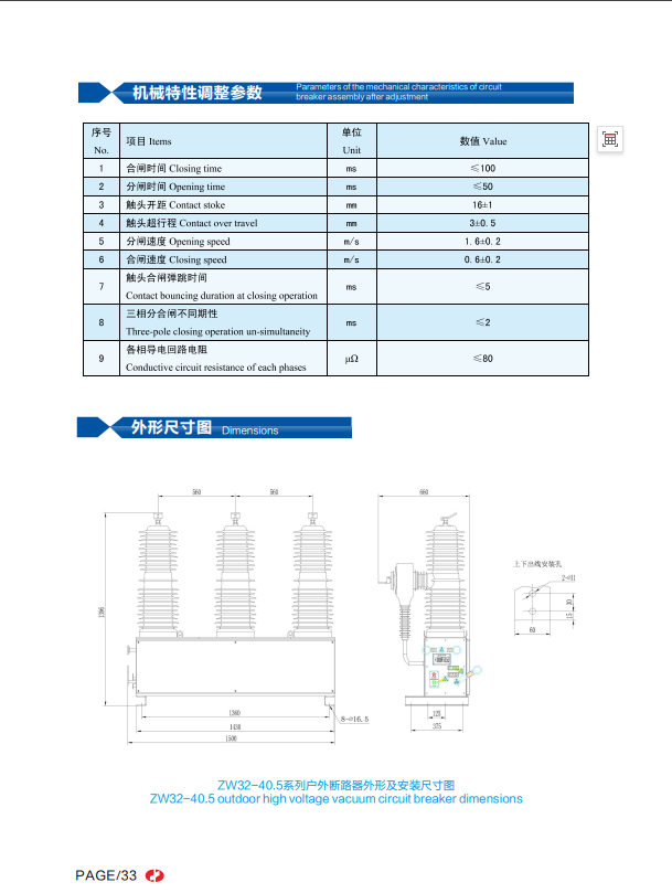 | ZW32-40.5(36)型戶外高壓真空斷路器 | |